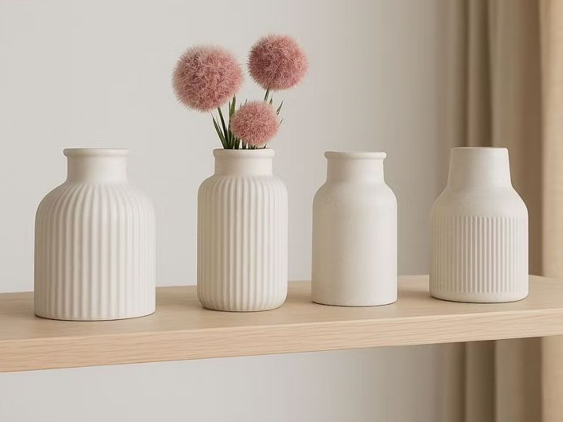 Vasos pequenos são ótimos para preencher a decoração sem pesar visualmente.